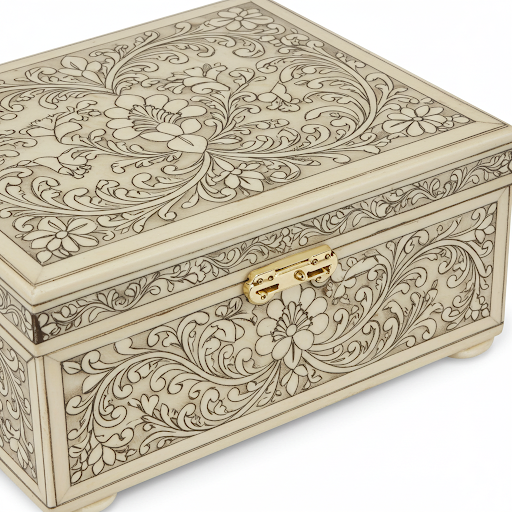Bone inlay has been used for centuries, admired for its delicate and intricate craftsmanship. A bone inlay jewelry box features unique, hand-carved patterns that make each piece a work of art. The natural bone inlay is carefully arranged to create beautiful designs, often complemented by rich colors and smooth finishes that make them visually appealing and highly durable.